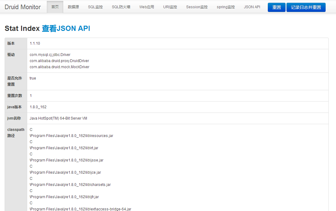 以上配置成功以后,访问:http://127.0.0.1:8080/druid/index.html