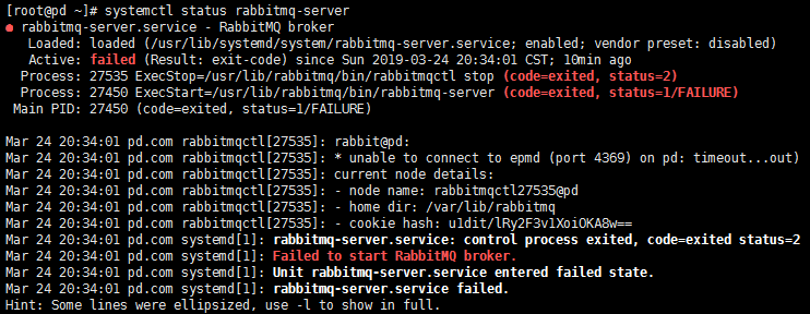 rabbitmq-server启动报错:Failed to start RabbitMQ broker