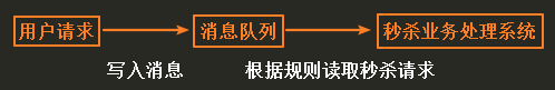 场景:秒杀活动,一般会因为流量过大,导致应用挂掉,为了解决这个问题,一般在应用前端加入消息队列。