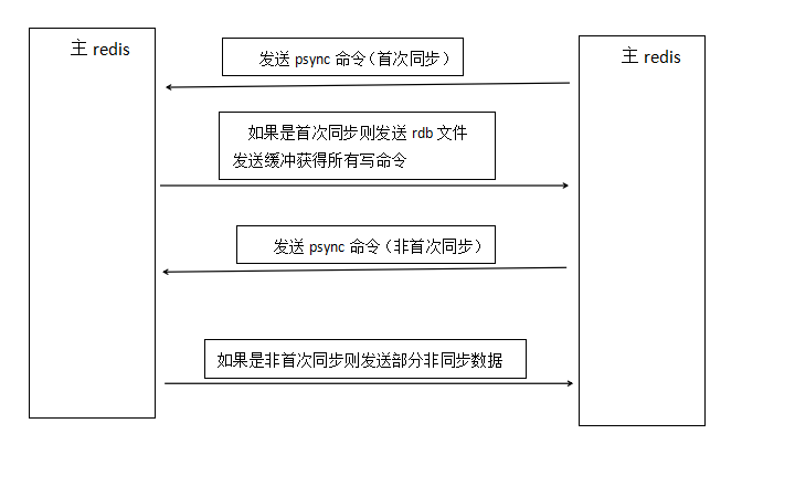 从redis连接主redis时,会主动发起psync命令,从机会提供主机的runid(机器标识,随机生成)和offset(数据偏移量,如果主从offset不一致则说明数据不同步)主机验证runid和offset是否有效,runid相当于主机身份验证码,用来验证从机上一次连接的主机,如果runid验证未通过则进行全同步(首次同步),验证通过则说明曾经同步过,根据offset同步部分数据。