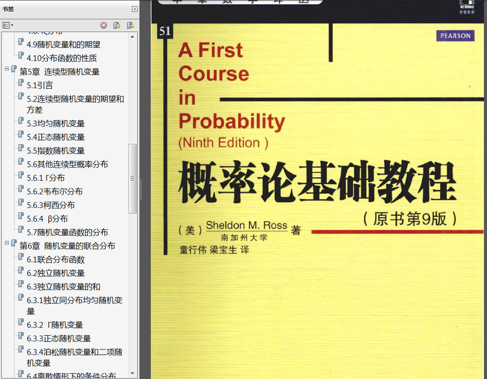 《概率论基础教程第9版》中文PDF,426页,带目录,文字可复制;英文PDF,484页,带目录,文字可以复制。 配套习题答案。