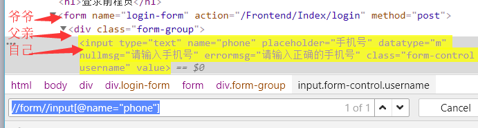 2.1 相对定位 -- 以// 开头 如://form//input[@name="phone"]