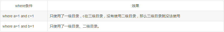 我们可以将组合索引想成书的一级目录、二级目录、三级目录,如index(a,b,c),相当于a是一级目录,b是一级目录下的二级目录,c是二级目录下的三级目录。要使用某一目录,必须先使用其上级目录,一级目录除外。
