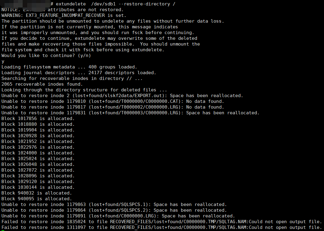 全部恢复 extundelete /dev/sdc1 --restore-allLoading