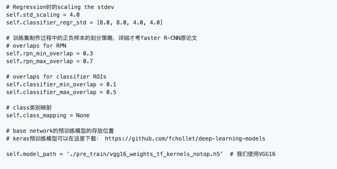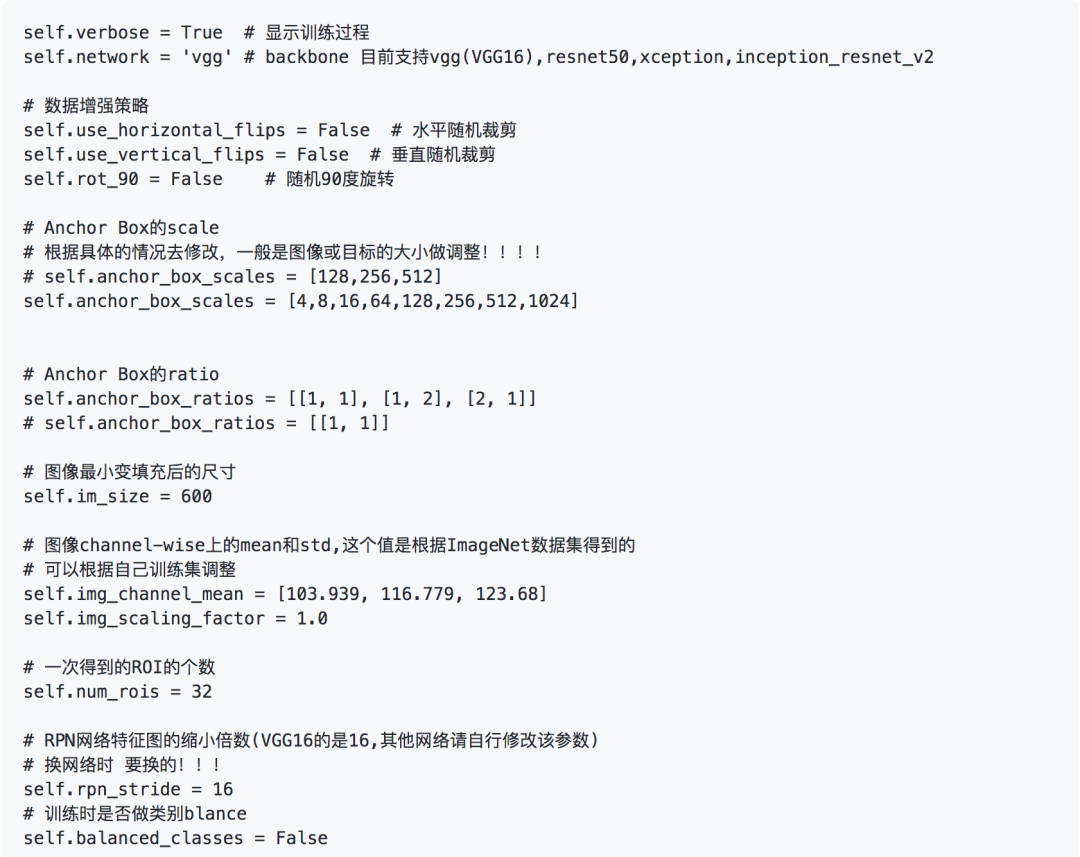 根据自己的训练集和训练任务修改./keras_frcnn/config.py的配置文件,相关参数的解释和配置如下: