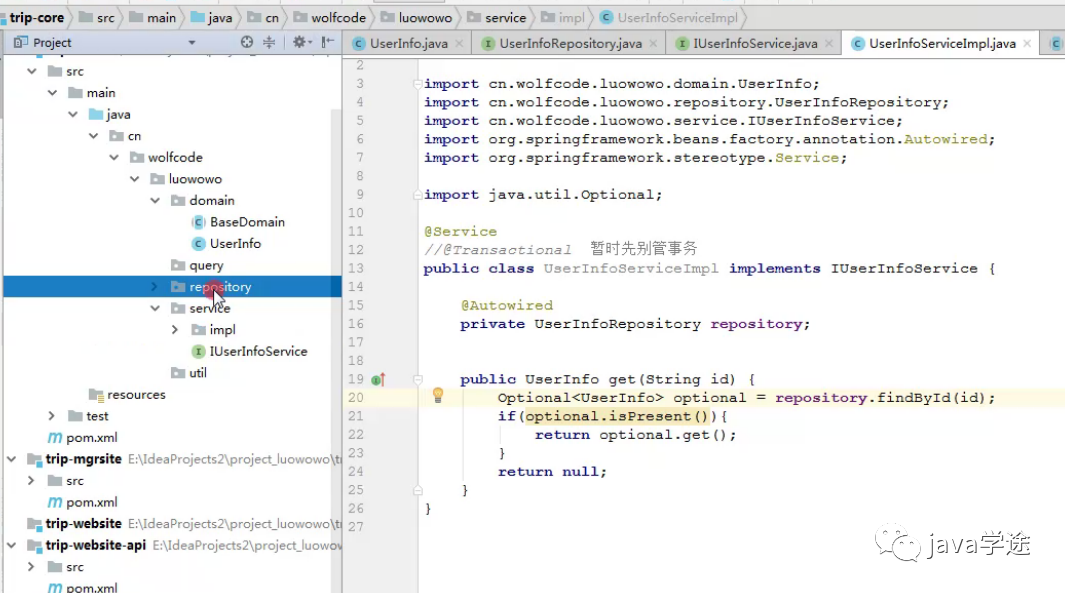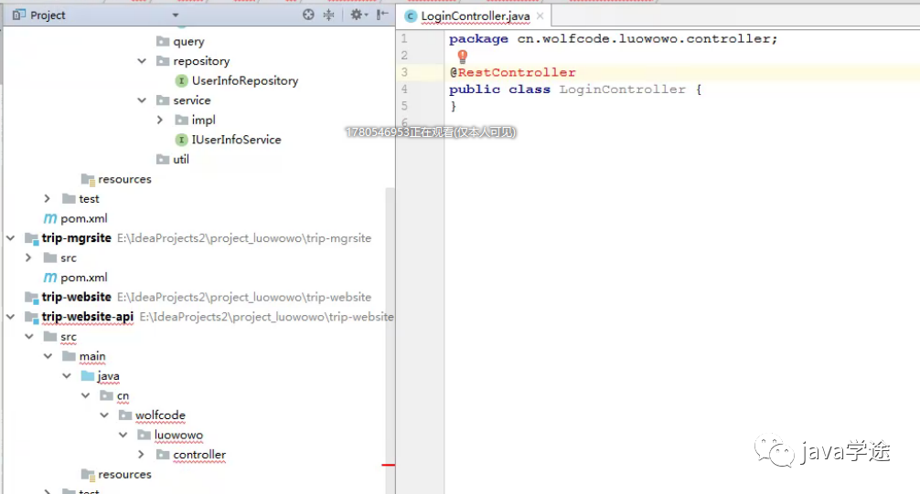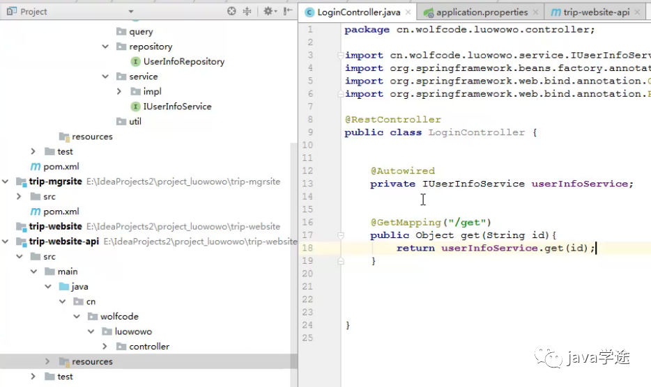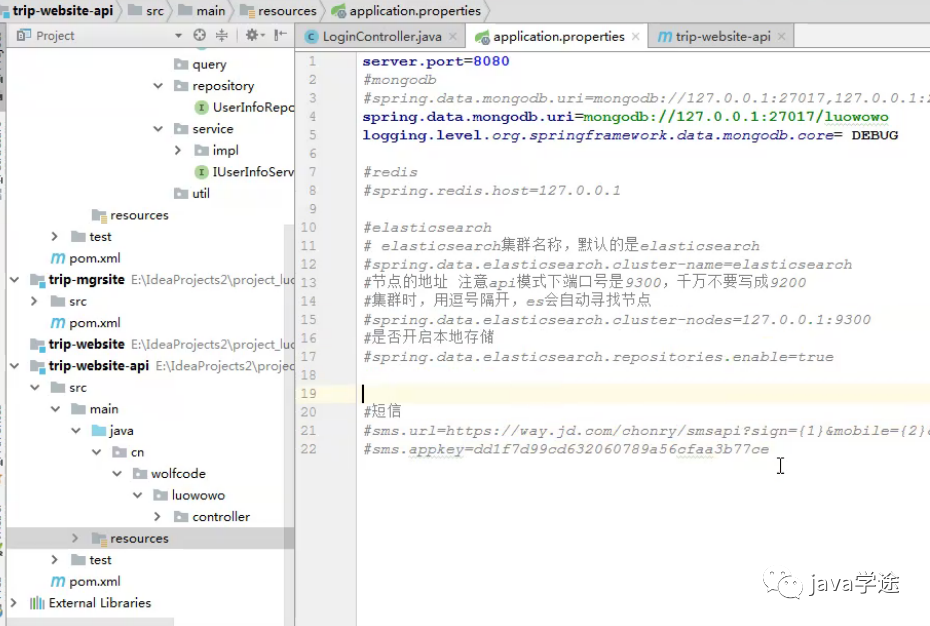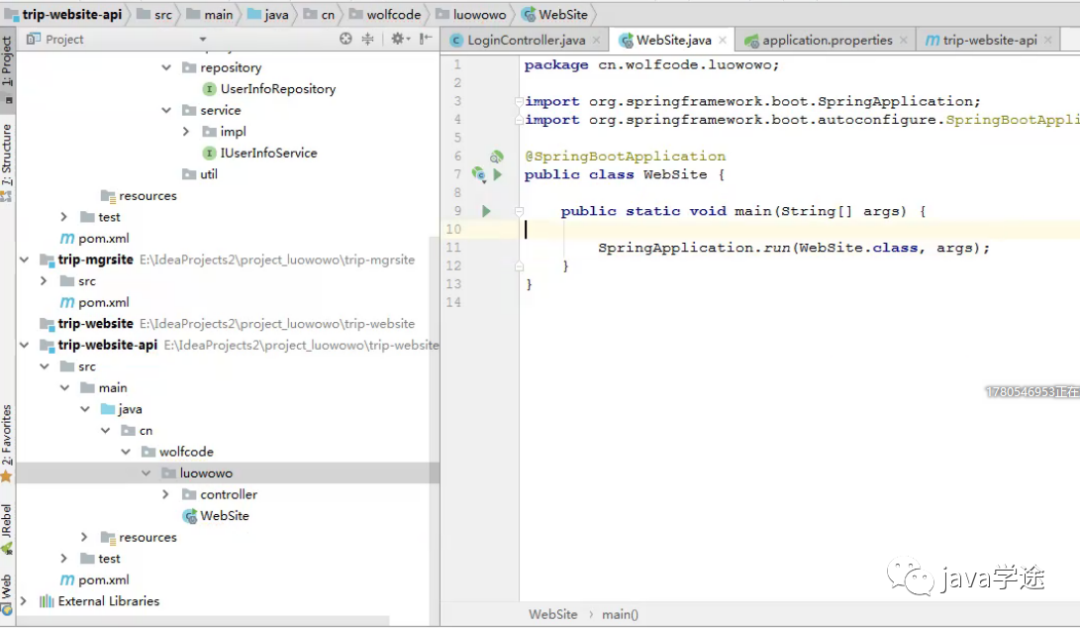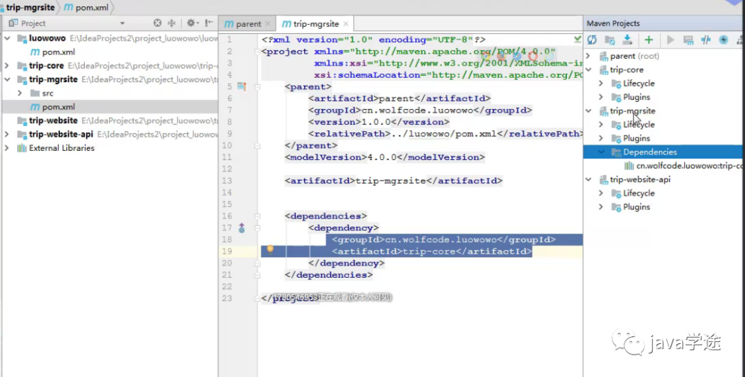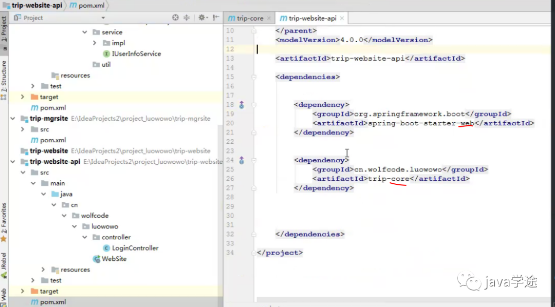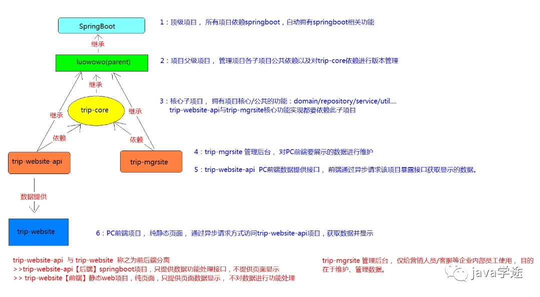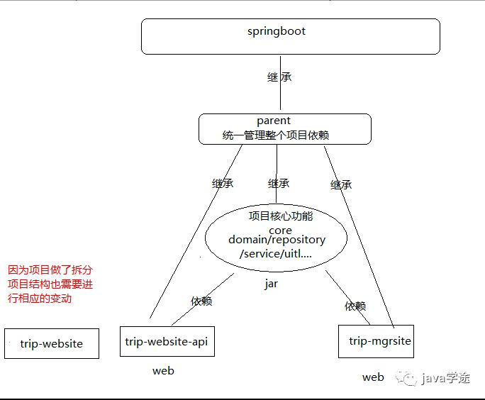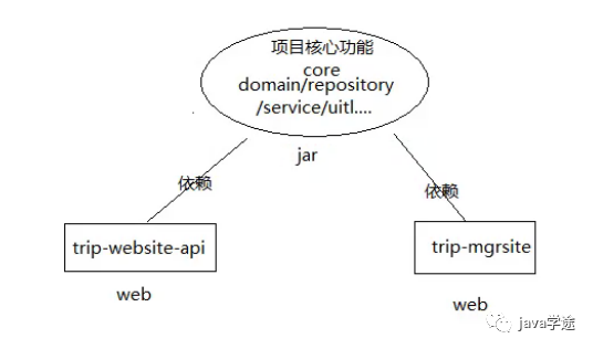 [trip-website]+ 纯接口[trip-website-api]);展示与管理的拆分(trip-mgrsite,trip-website/api);
