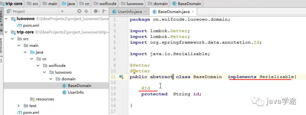 注意实现序列化接口;