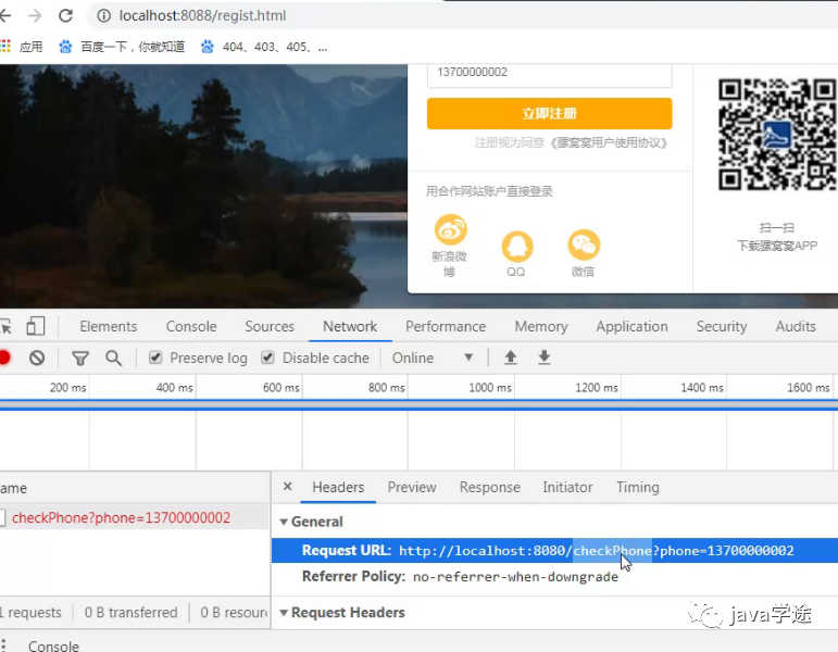 测试注册过程:
