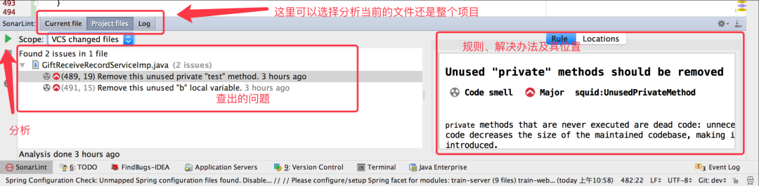 配置完成后,在当前项目环境下,idea的左下角就可以看到sonar扩展了: