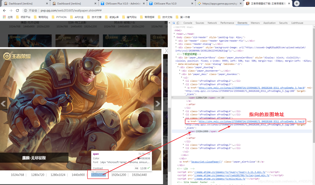 ⑦、那就去分析网站,随便点开一张壁纸,查看指定格式的链接