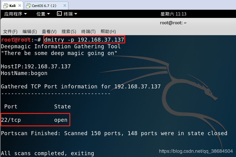 3.2> 也可以使用dmitry的方式进行端口扫描