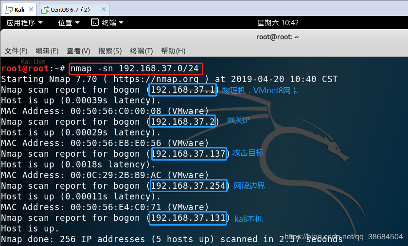 - 攻击机:Kali,IP地址为:192.168.37.131