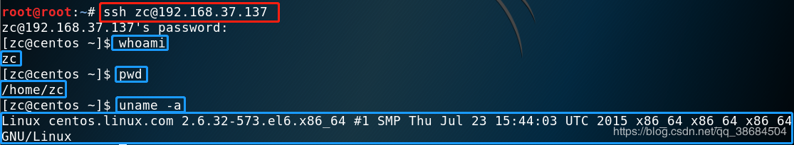 使用普通用户zc登录目标主机(注:此处虽然爆破出了root账户的密码,但是为了进行提权操作,就使用普通用户登录)