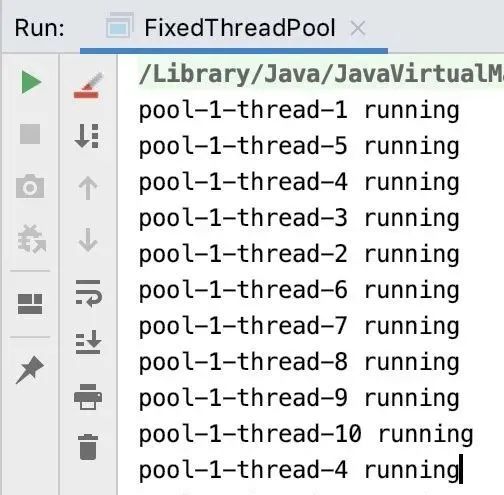 这里我限制了线程池里最多有 10 个线程,哪怕有 200 个任务需要执行,也只有 1-10 这 10 个线程可以运行。