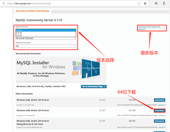 1、下载地址https://dev.mysql.com/downloads/mysql/