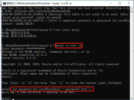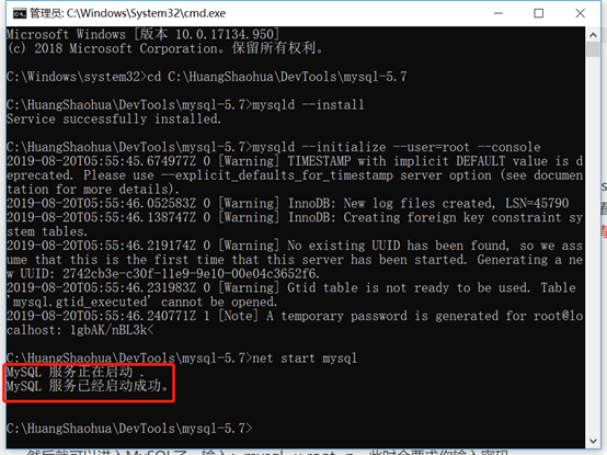 6、启动MySQL服务:net start mysql