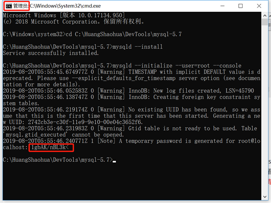 执行:mysqld --initialize --user=root --console
