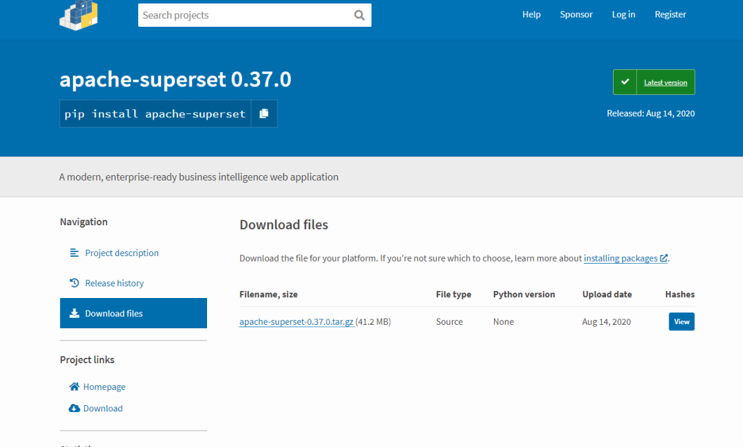 https://pypi.org/project/apache-superset/#files