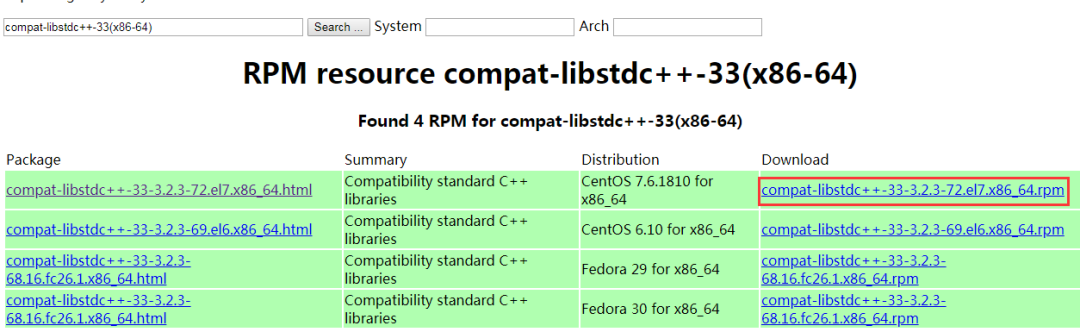 碰见这种情况,一个是可以从操作系统安装文件的Package中找到些库,另一个就是从网上检索安装库,在我的测试中,大部分少的库,都可以从Package中找到,但是compat-libstdc++-33这个并不在。