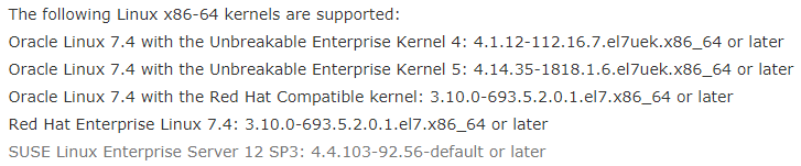 Linux上安装Oracle 19c,需要OL7、RHEL7、SLES12及以上的更高版本。Oracle Enterprise Linux6和RedHat Linux6并没有出现在官方给的列表中,