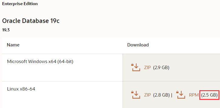 可以看到,19c开始支持企业版本的RPM,容量是2.5GB,