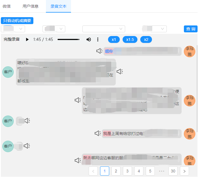 最近做了一个将通话记录,语音转文字并可以在聊天记录里标注动机和摘要的需求,