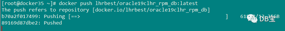 32[root@docker35 ~]# docker push lhrbest/oracle19clhr_rpm_db:latest