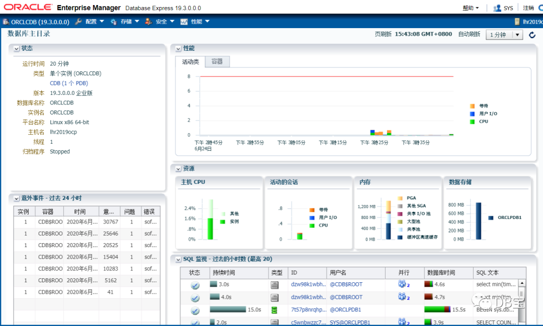 一、安装Docker软件二、创建CentOS7.6的容器三、rpm方式安装Oracle 19c3.1、安装database-preinstall包3.2、下载安装db软件,上传到docker容器内3.3、创建数据库实例四、数据库配置4.1、修改密码4.2、修改参数4.3、修改EM的展现方式4.4、配置用户环境变量五、重启容器后的操作六、将容器打包成镜像上传,供其他用户使用七、其他用户下载使用