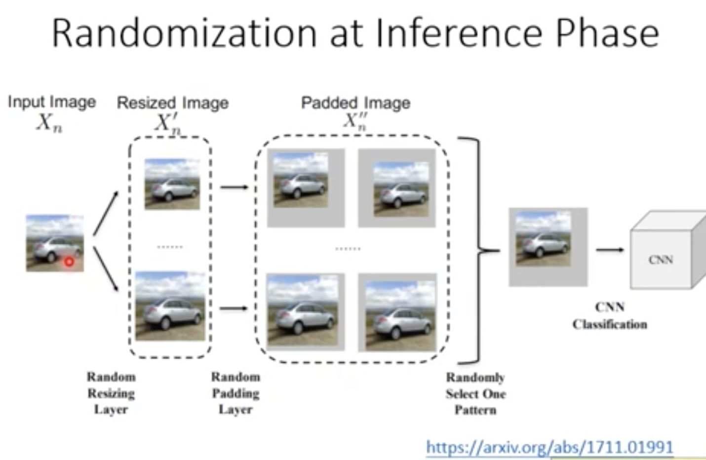 Randomization at Inference Phase对图像采用随机的、微小的改变,例如缩放、填充等,对改编后的图片进行分类.