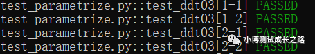 @pytest.mark.parametrize('a',[1,2])@pytest.mark.parametrize('b',[1,2])def test_ddt03(a,b):print(f'数据组合 a:{a}, b:{b}')