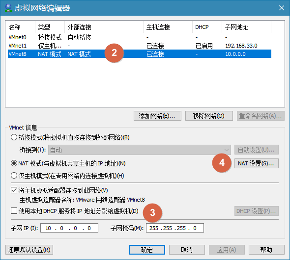 修改虚拟机的虚拟网卡信息,这样虚拟机就可以上外网了;