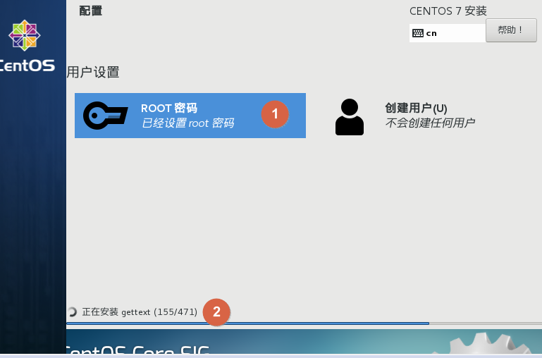 安装时配置好root密码,如果设置简单密码确认两次,才可以将密码设置成功,大概安装包数量471个,因系统而定;