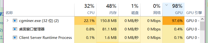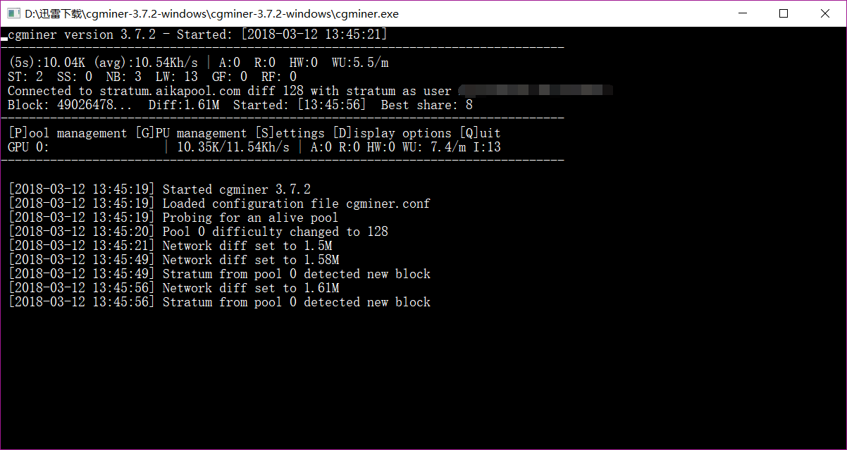 然后运行cgminer,就能挖矿了,挖矿需谨慎,穷学生笔记本,怕电脑报废,如果成功了就会变成active