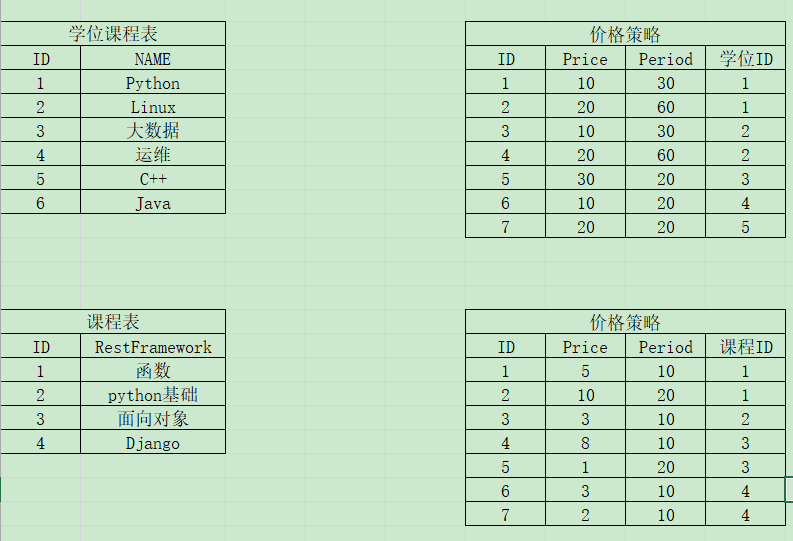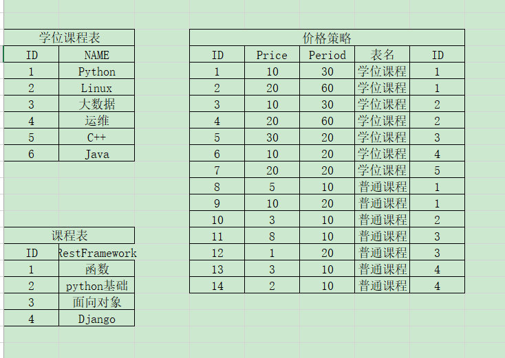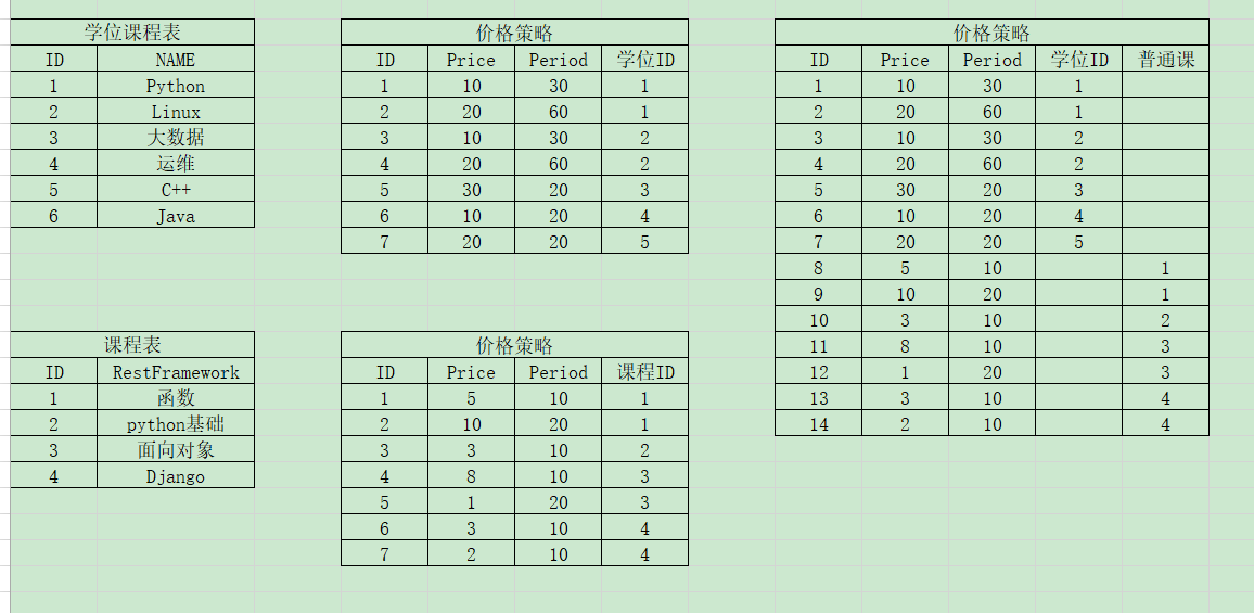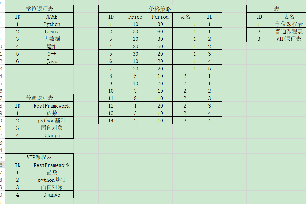 对面价格策略表,数据量非常大的时候,如果突然间想改一下课程表的名字,如果普通课程表,变为 普通的的课程表。这种情况下,表的改动量是非常巨大的。所以,新添加一个表,存储所有的表名称。价格策略中的表名,关联这个新建的表的id。这样如果,出现想修改某张表的表名的时候,直接对新建的这张表进行修改,就可以。