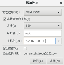KVM迁移:打开virt-manager 选择文件 选择Add Connection
