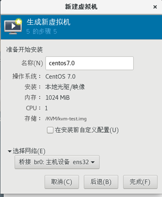 3、 在源主机的KVM中新建虚拟机并安装系统