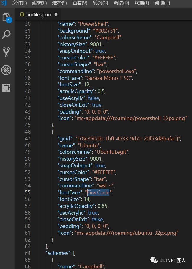 然后在命令行应用之,具体操作是在`profiles.json`中把字体设置成它,即可生效。