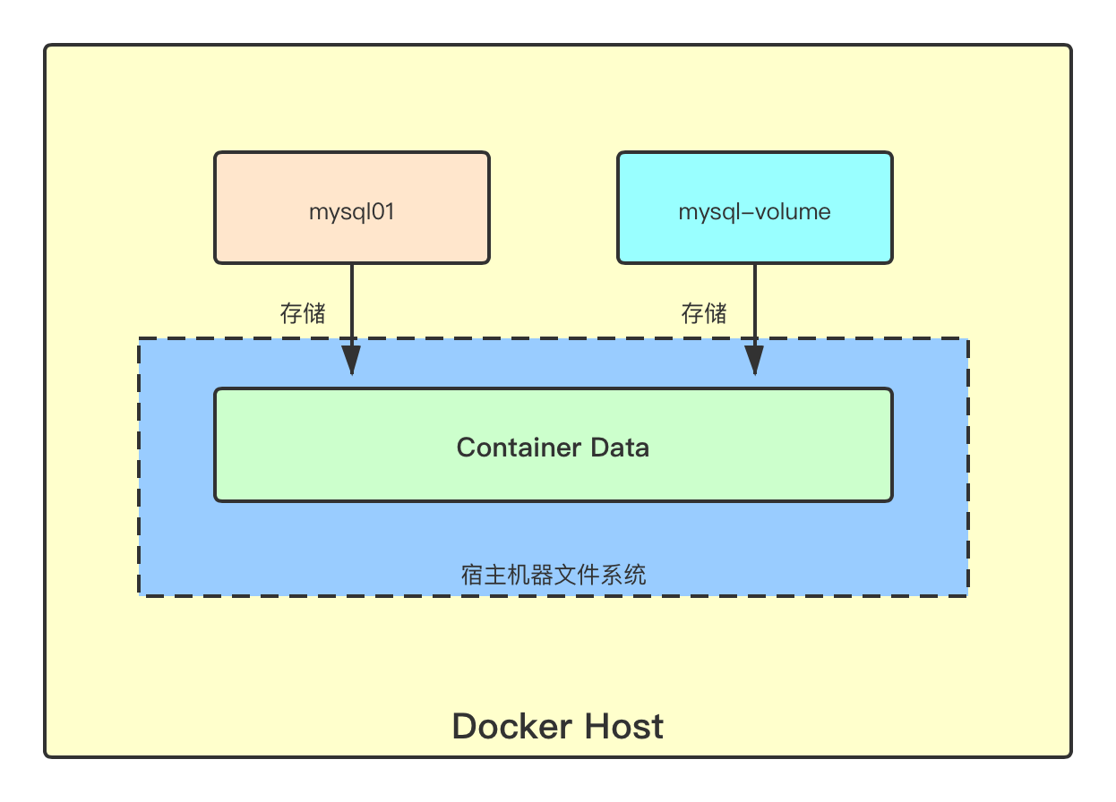 - volumes - 在宿主的文件系统上的docker工作路径下创建一个文件夹(