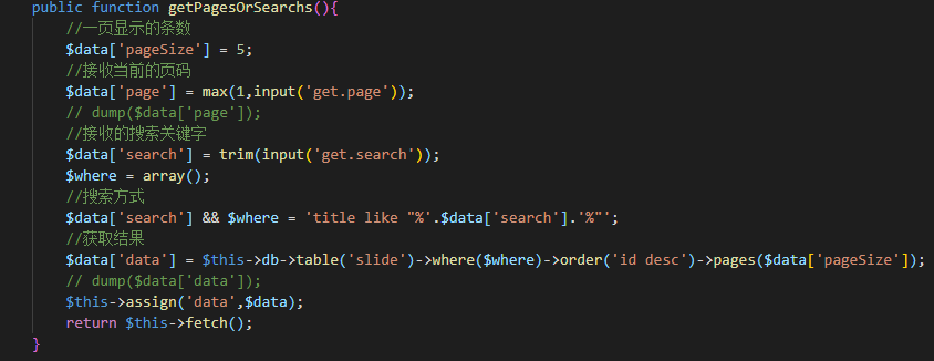 五.在PHP文件中,创建getPagesOrSearchs方法