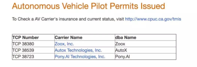 但其实,早在去年六月份,AutoX和小马智行(Pony.AI)两家中国公司在加州就获得了加州公用事业委员会颁发的自动驾驶出租车许可牌照,硅谷洞察对此专门进行了报道。