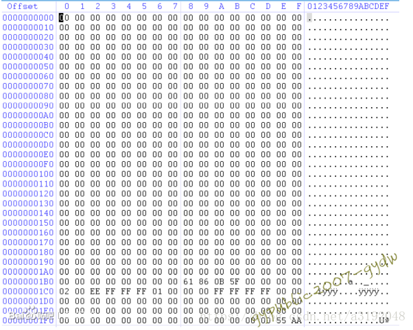 1BE-1FD 64个字节是硬盘分区表DPT(Disk Partition Table)