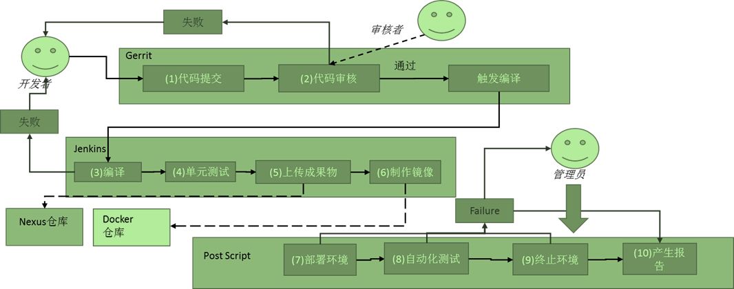 这就是整个过程,层层保证质量,从中可以看到,敏捷开发,持续集成,持续交付,持续部署,DevOps是互相联系的,少了哪个,流程都玩不转。