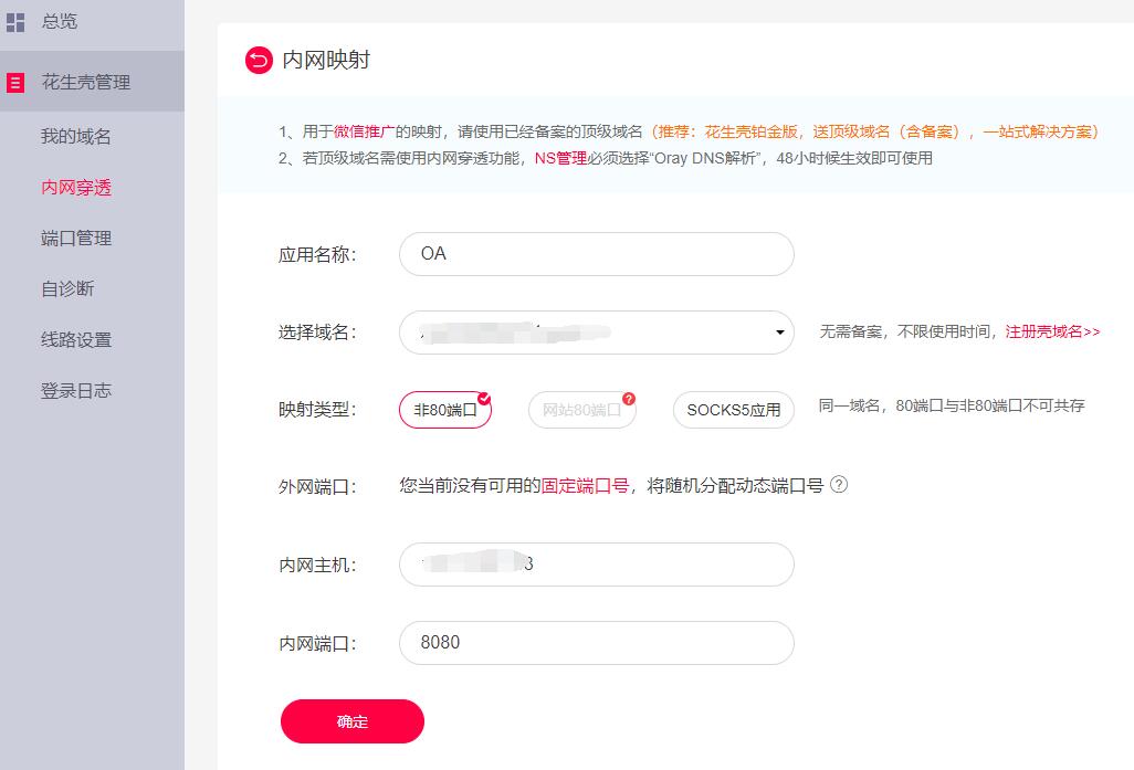 由于前后台是两个人开发的,需要远程访问。而因为注册的阿里云域名审查时间长,暂时用的花生壳远程连接。方法:下载花生壳客户端,使用免费赠送的域名,这里花了六块钱,忘了哪花的了。