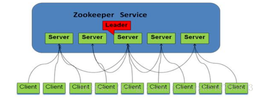 (3)上图中每一个Server代表一个安装Zookeeper服务的机器,即是整个提供Zookeeper服务的集群(或者是由伪集群组成);
