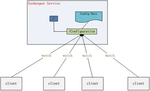 程序分布式的部署在不同的机器上,将程序的配置信息放在ZooKeeper的znode下,当有配置发生改变时,也就是znode发生变化时,可以通过改变zk中某个目录节点的内容,利用watch通知给各个客户端 从而更改配置。