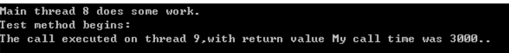 Console.WriteLine("The call executed on thread {0},with return value {1}.", threadId, returnValue);