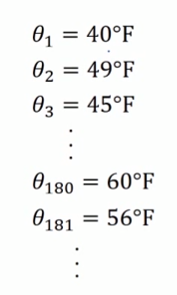 这里有一个每日温度图(华氏摄氏度℉),右边是每日温度,$\theta _{i}$表示第i天的温度: