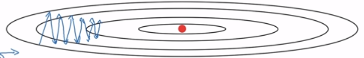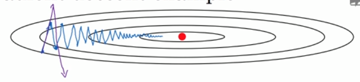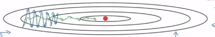 蓝色线为梯度下降轨迹,红点为最优点,假设纵向为偏置b横向为权重W(这里只是为了便于理解做假设,实际情况可能纵向为W1、W2横向为W3、W4),纵向上波动较大,或者说梯度较大,而在横向上梯度正常或者较小。那么我们希望达到这么一个效果,纵向b的为了消除摆动我们希望学习率较低,而横向W我们希望每次迭代的学习率足够大。