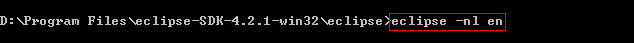 当我们通过使用中文的开发环境以及对Eclipse有了一个大概的了解,想要切换回英文开发环境该怎么呢?其实不需要把中文包删除,我们可以使用命令行进入Eclipse主目录后输入: