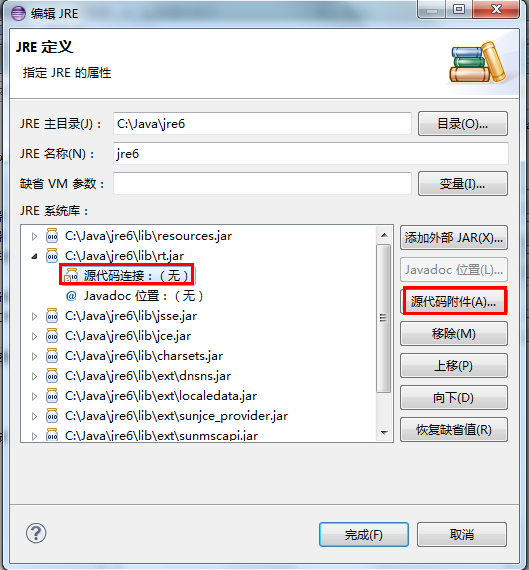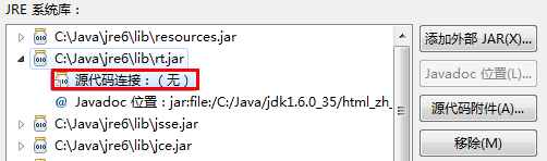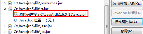 选择"rt.jar"包——>>"源代码链接"——>>"源代码附件"